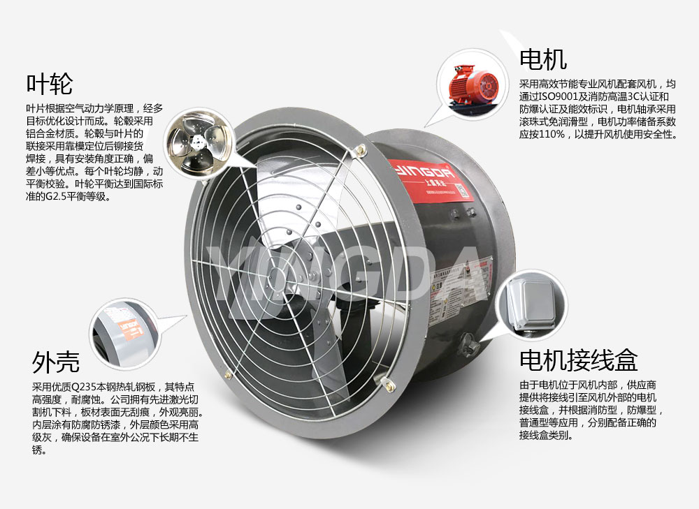 ——防爆型:電機為隔爆型、葉片為鋁合金,適用于易燃、易爆氣體的環(huán)境中,防爆等級為EXdIIBT4。